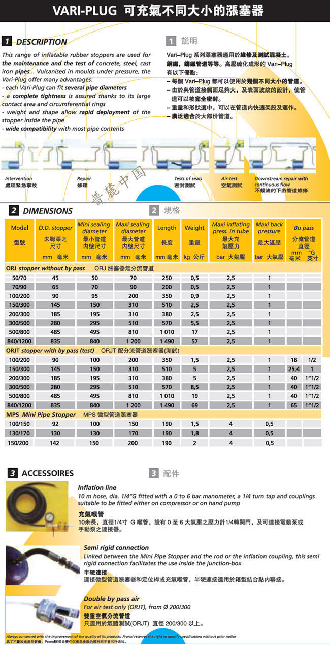 VARI PLUG管道堵塞體堵塞體PRONAL系列