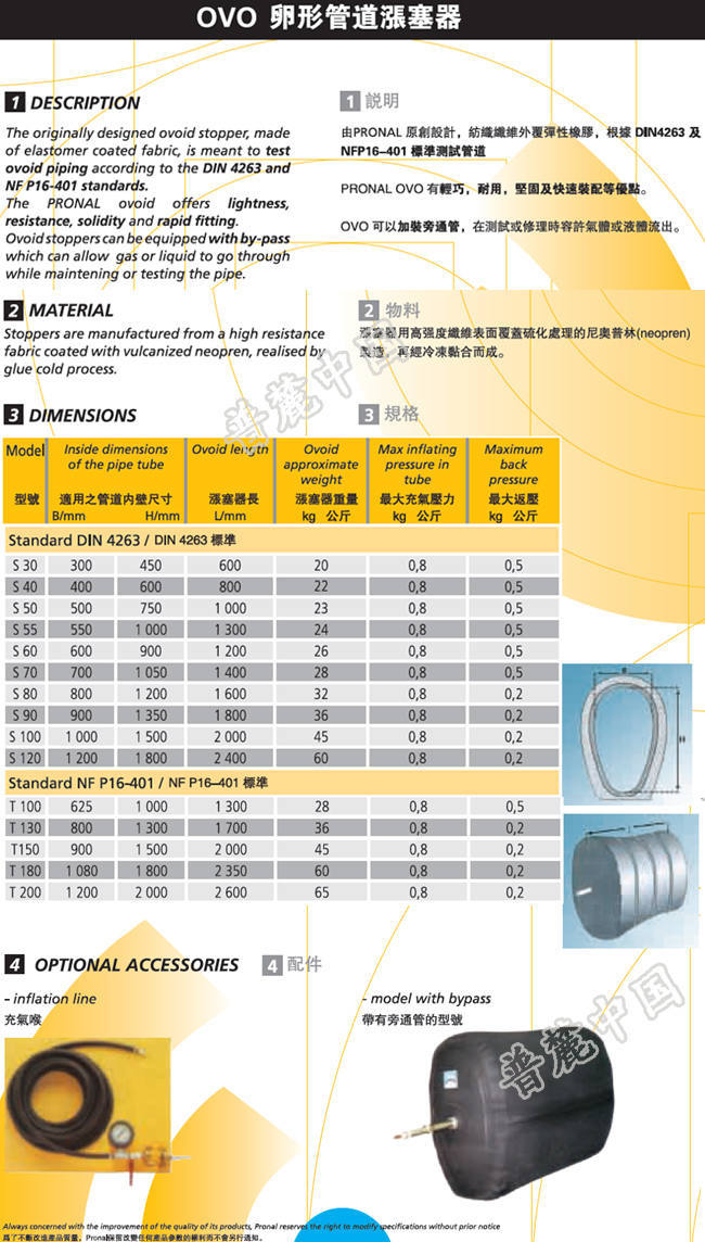 OVO卵形堵塞體管道堵塞體PRONAL系列