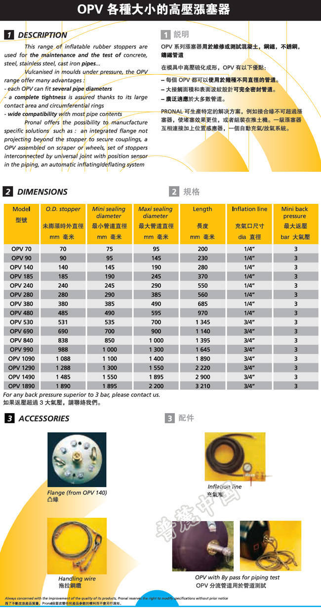 當前位置:PRONAL > 產品中心 > 核能 > 管道氣囊管道堵水氣囊管道封堵氣囊法國PRONALOPV系列